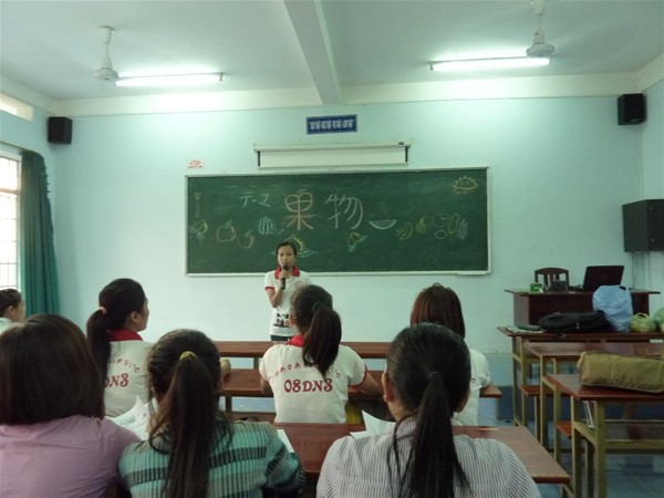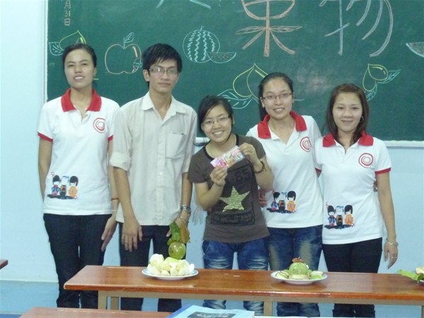 学生は果物に関することも話したし、一生懸命相談したし、それに果物についてのゲームも参加して楽しました。