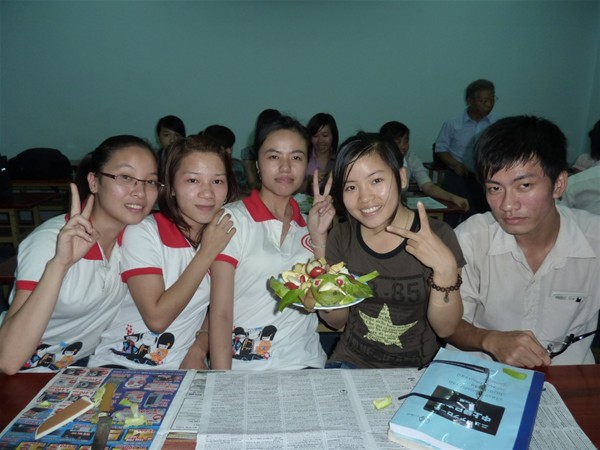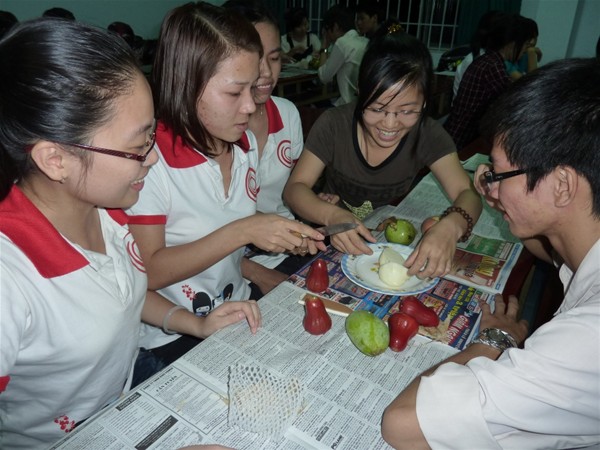 Các bạn sinh viên đã cùng nhau đưa ra những hiểu biết về trái cây, cùng thảo luận sôi nổi và cùng nhau tham gia trò chơi liên quan đến trái cây.