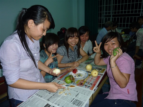 Mọi người cùng tham gia trò chơi mang tên "Trang trí trái cây"