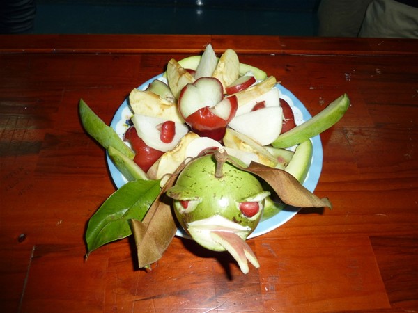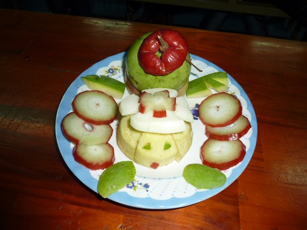 皆は果物をきれいに飾るというゲームに参加して楽しました