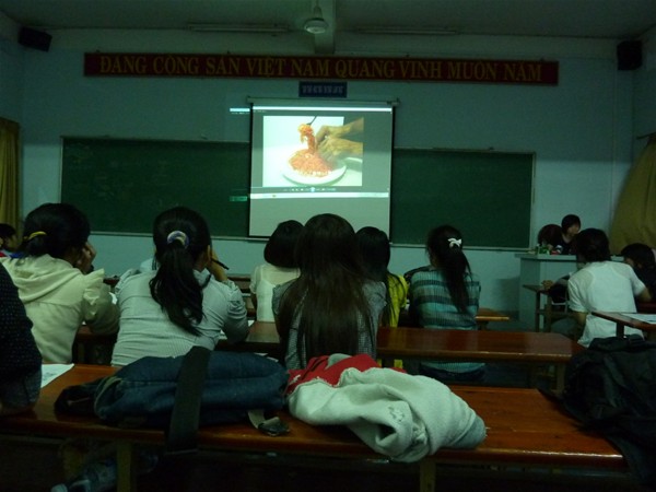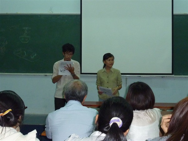 (08DN114) Kieu My さんと (09DN112) Hoang Huynh さんは本期のテーマについて紹介している