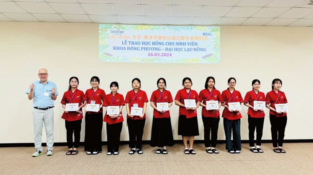 Ngày 26/03/2024, Thầy Huỳnh Thúc Hiếu – Phó trưởng Trung tâm tuyển sinh và Quan hệ công chúng, Cô Trần Minh Thùy Dương – Trưởng ngành Nhật Bản học, thầy Nguyễn Tấn Bình – Phụ trách Quan hệ doanh nghiệp Khoa Đông phương học đã cùng với 10 bạn sinh viên có hoàn cảnh khó khăn, nhận học bổng của công ty TNHH Công nghiệp Brother Sài Gòn trao tặng và các bạn sinh viên khác trong ngành Nhật Bản học kết hợp tham quan doanh nghiệp.