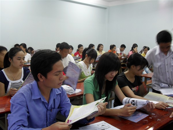 Sinh viên cùng tham khảo tài liệu liên quan đến cuộc thi "Hùng biện tiếng Nhật"