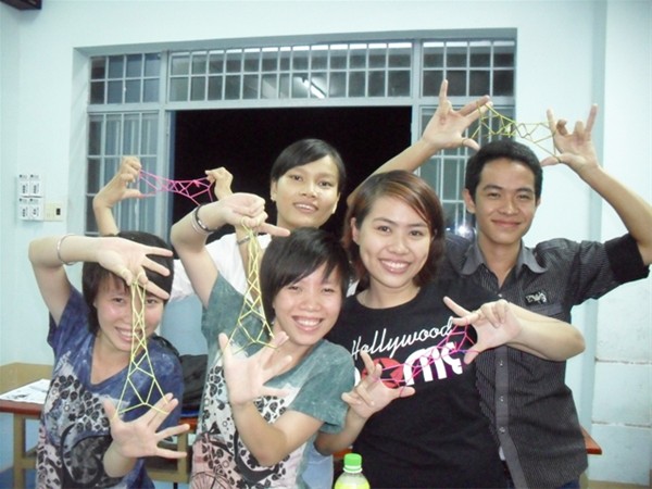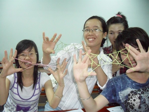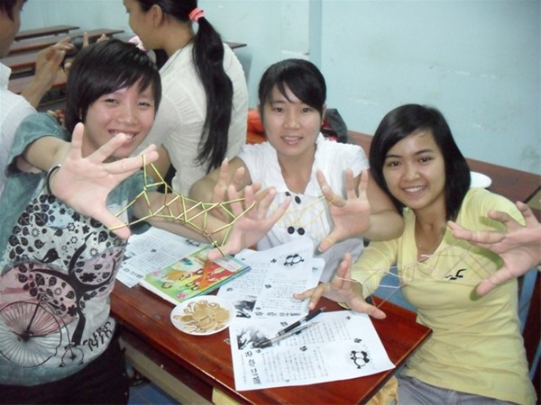Niềm vui khi các bạn sinh viên hoàn thành tác phẩm "Chiếc cầu"  và "Tháp Tokyo" với bộ môn chơi dây.