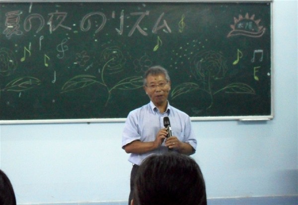 Thầy Tobita đang kể về kỳ du lịch hè thú vị của Thầy với CLB
