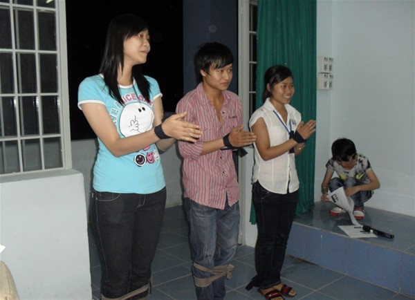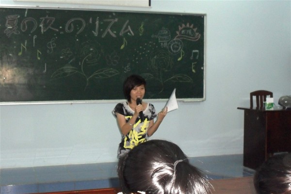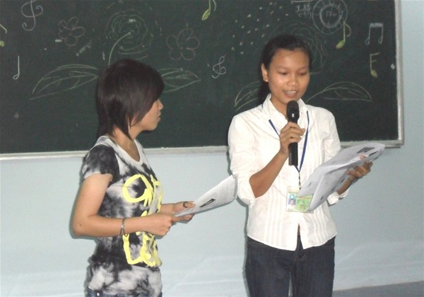 MC nhí nhảnh và dễ thương Phạm Thị Thu Hường (09DN111) đang giới thiệu về chủ đề của buổi sinh hoạt
