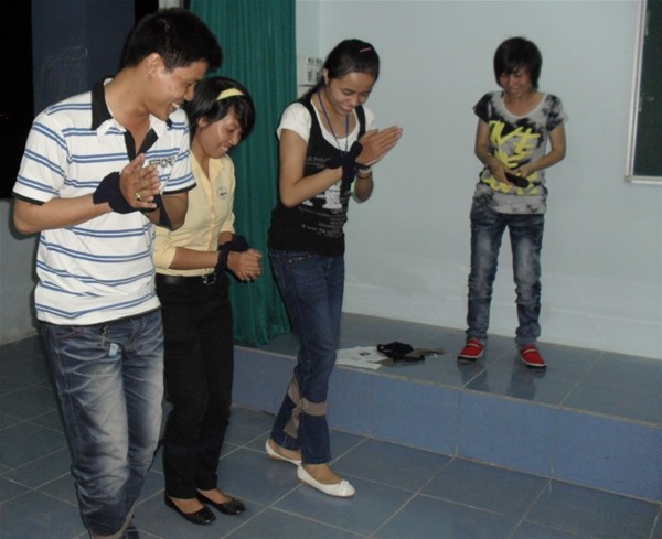 Mọi người hào hứng tham gia trò chơi "Dáng đi của con ma" và nhận quà từ BTC.CLB