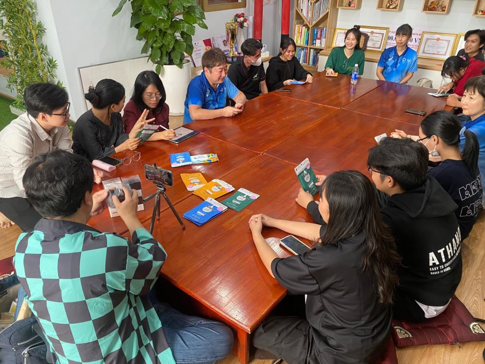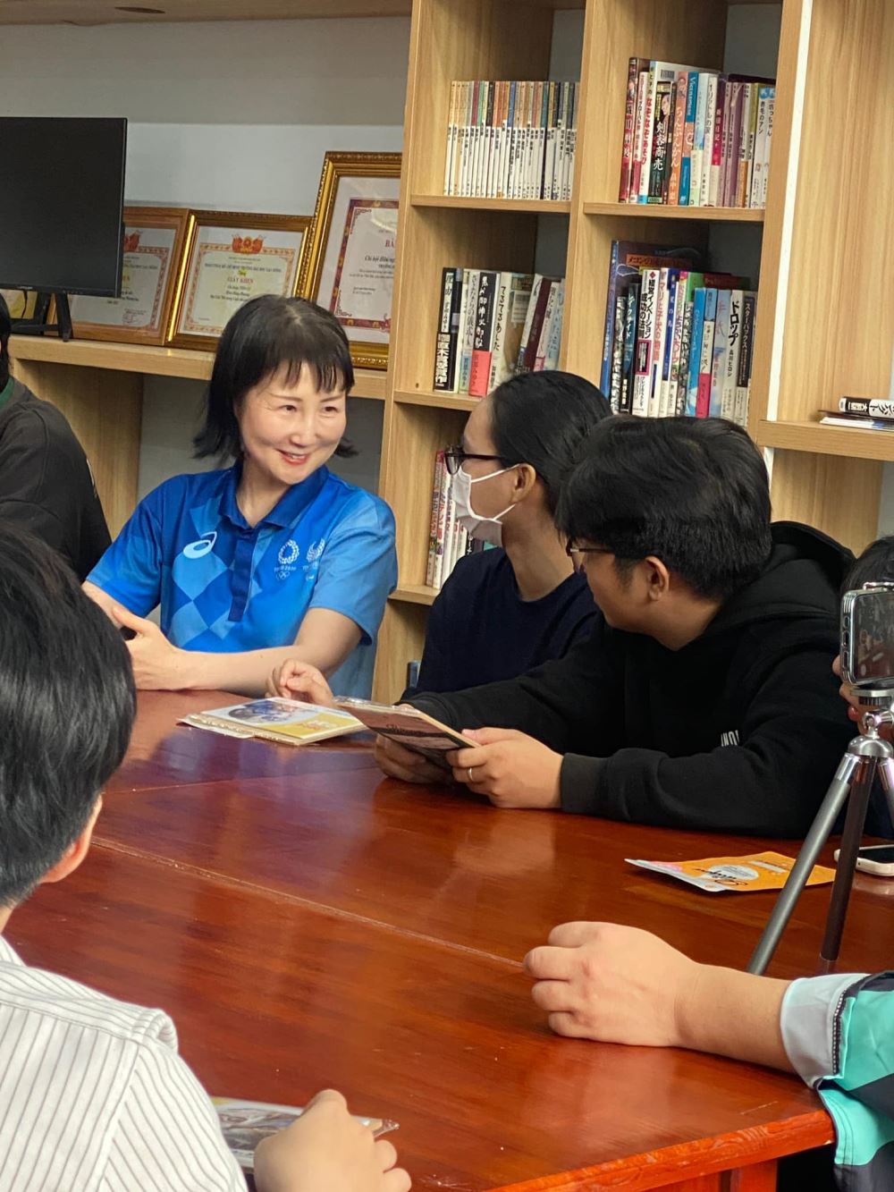 Buổi gặp gỡ bắt đầu vào chiều một ngày nắng đẹp, tạo điều kiện lý tưởng cho không khí trò chuyện và giao lưu. Các thành viên trong câu lạc bộ không chỉ chia sẻ kinh nghiệm của mình trong việc làm tình nguyện viên tại sự kiện thể thao lớn nhất thế giới mà còn thảo luận về văn hóa, ngôn ngữ và nghệ thuật truyền thống của Nhật Bản.